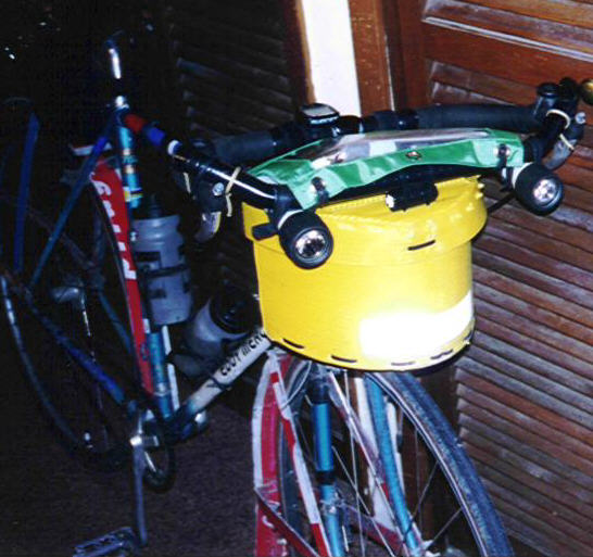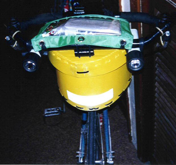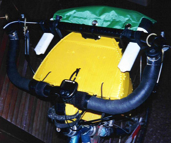 I've used various handlebar bags over the years but I've never found one that I really liked. Being something of a tinkerer, I finally decided to make my own bag out of coroplast and the pictures above show the final result. Clicking on any of the thumbnails will present you with a bigger view.