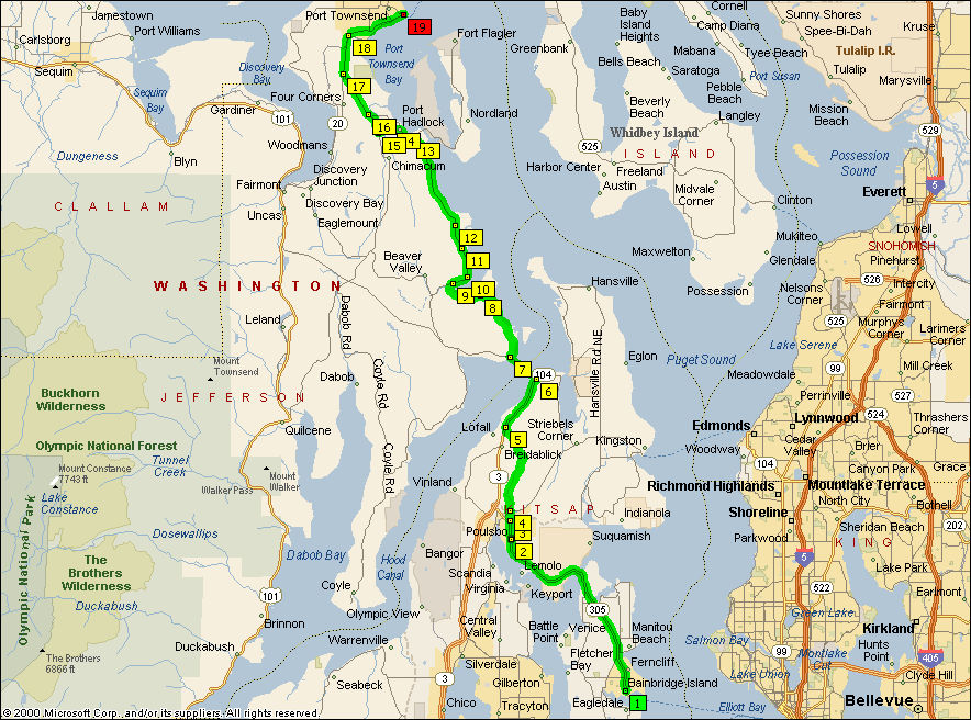 | 9:15 AM | 0.0 | 1 Depart Bainbridge Island on Local road(s) (East) for 60 m |